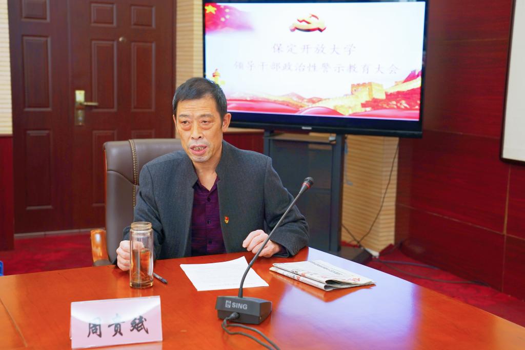 黨委書記周貴斌指出,當前反腐敗斗爭形勢依然嚴峻,廣大黨員干部要將警示教育片中的典型案例作為反面教材,從身邊人、身邊案中汲取教訓,知敬畏、存戒懼、守底線,筑牢拒腐防變的思想道德防線,永葆中國共產黨人的初心本色。周書記對全體黨員干部提出三點要求:一要充分認清形勢,切實吸取教訓,時刻警鐘長鳴,補精神之鈣、除作風之弊、筑信仰之基。二要加強黨性修養,堅持從嚴律己,筑牢拒腐防變根基,以理論武裝堅定理想信念,嚴肅黨內政治生活,始終保持黨員干部隊伍純潔性。三要踐行初心使命,激勵擔當精神,開創各項工作新局面,形成干凈干事、廉而有為的干事創業氛圍,以更負責、更務實的態度和作風,全力以赴做好今后的工作,以開放大學更名轉型為契機,凝心聚力干事業,全力以赴謀發展,為現代化品質生活之城建設做出應有貢獻。