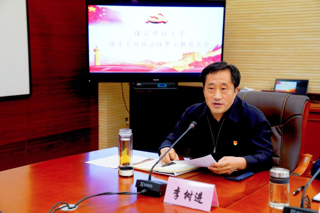 為深入學習貫徹落實黨的十九屆六中全會精神與習近平總書記關于全面從嚴治黨的重要論述,加強和改進保定開放大學作風紀律建設,切實增強黨員干部廉潔自律和拒腐防變能力,堅定不移推動全面從嚴治黨向縱深發展。11月18日上午,保定開放大學在八樓第二會議室召開領導干部政治性警示教育大會。校黨委班子成員、全體中層干部參加會議。會議由校長李樹進主持。