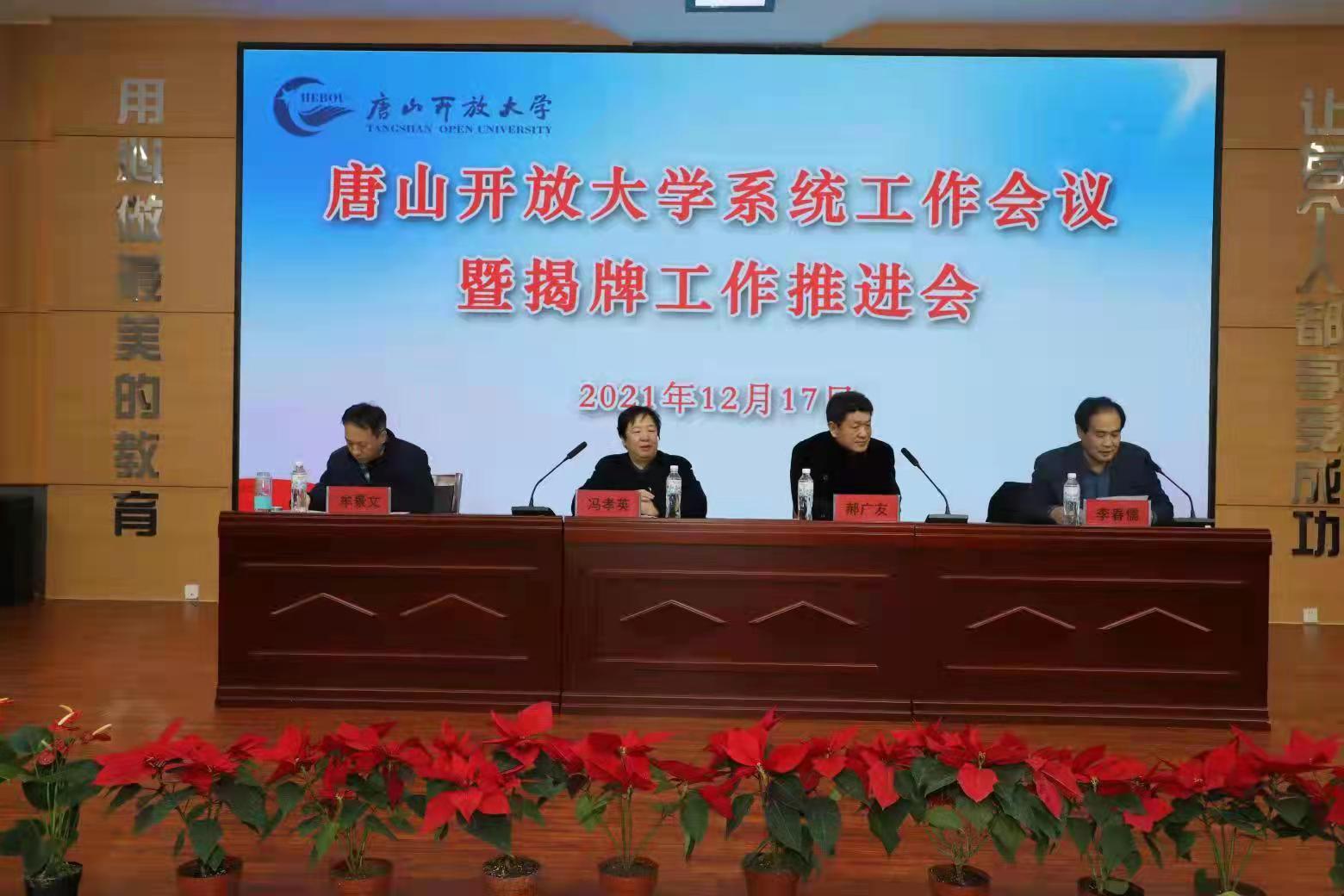 2021年12月16日-17日,唐山開放大學(xué)在金橋分校召開全系統(tǒng)工作會議暨揭牌工作推進(jìn)會。16日下午,組織各縣區(qū)分校校長就更名揭牌工作進(jìn)行了交流討論。17日上午,召開2021年度全系統(tǒng)工作會議,唐山開放大學(xué)黨委書記、校長郝廣友、黨委委員、副校長牟景文出席會議,各縣區(qū)分校校長、主管校長、市校業(yè)務(wù)處室中層干部參加了會議。會議由副校長李春儒同志主持。