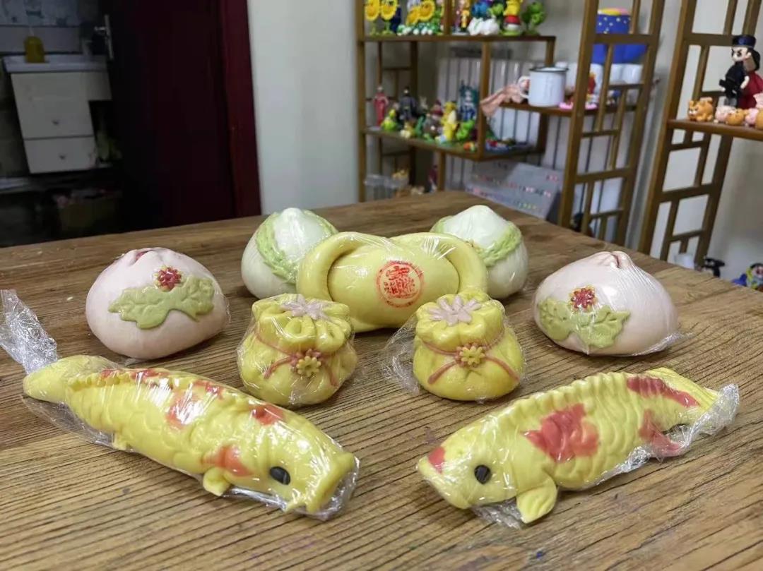 張英英老師說:面塑、面花技藝最早可追溯到漢代,它以面粉、糯米粉為原料,首先制成面團,然后用手或者各種專用塑型工具捏塑成各種形象。
