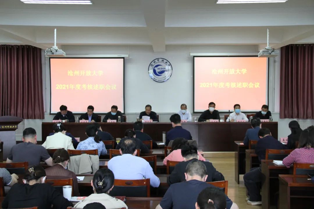 4月26日下午,滄州開放大學(xué)在多功能廳召開2021年度教職工考核述職會(huì)議,滄州開放大學(xué)黨委班子成員及全體教職工參加會(huì)議。