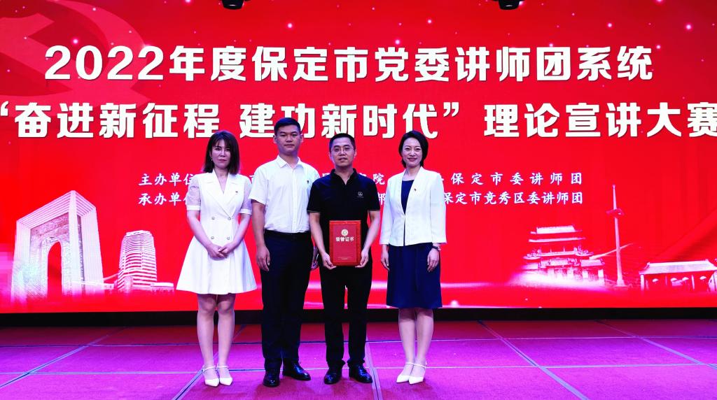 6月30日,2022年度保定市黨委講師團系統(tǒng)“奮進新征程 建功新時代”理論宣講大賽舉行,保定開放大學教師團隊以“弘揚保定精神,提升文化軟實力,打造保定新名片”為題參加大賽并榮獲三等獎。