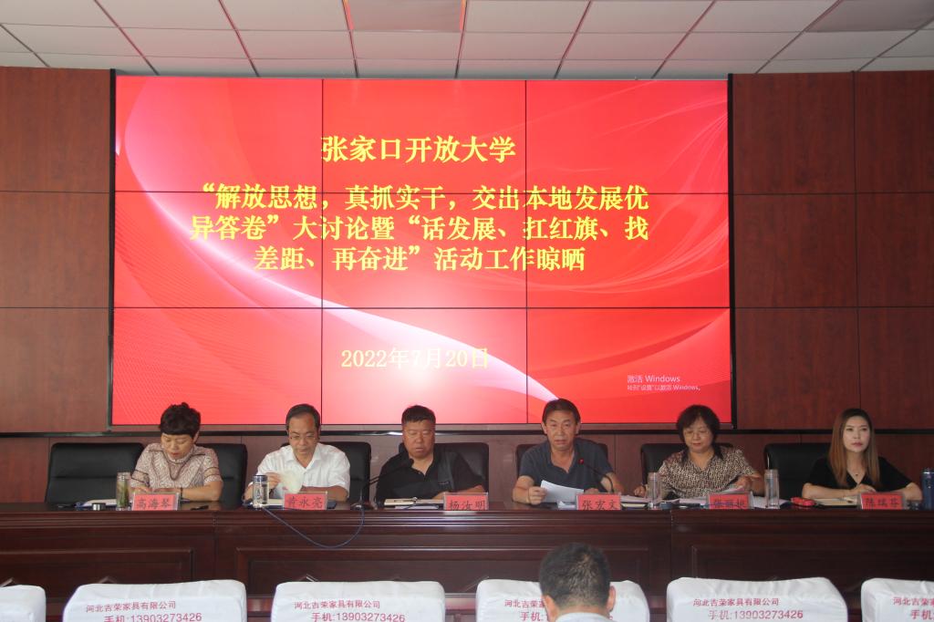 7月20日,張家口開放大學按照校黨委部署的“解放思想、真抓實干,交好本地發展優異答卷”大討論活動要求,召開中層干部半年述職及工作晾曬大會。會上,各處室負責人綜合本部門全體人員在前一階段討論情況,依次做了本處室半年整體工作的總結和下半年工作的謀劃發言,處室主管領導進行點評,最后學校黨委書記楊汝明代表黨委發表講話。會議由黨委副書記、校長張宏文主持。