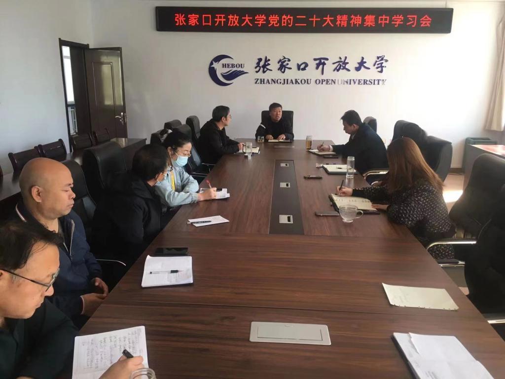 10月18日,張家口開放大學黨委組織召開黨委擴大會議,會議由黨委書記楊汝明同志主持會議,并帶領與會人員對二十大報告精神進行了學習解讀。