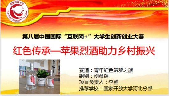 銅獎項(xiàng)目:紅色傳承——蘋果烈酒助力鄉(xiāng)村振興(懷來開放大學(xué))