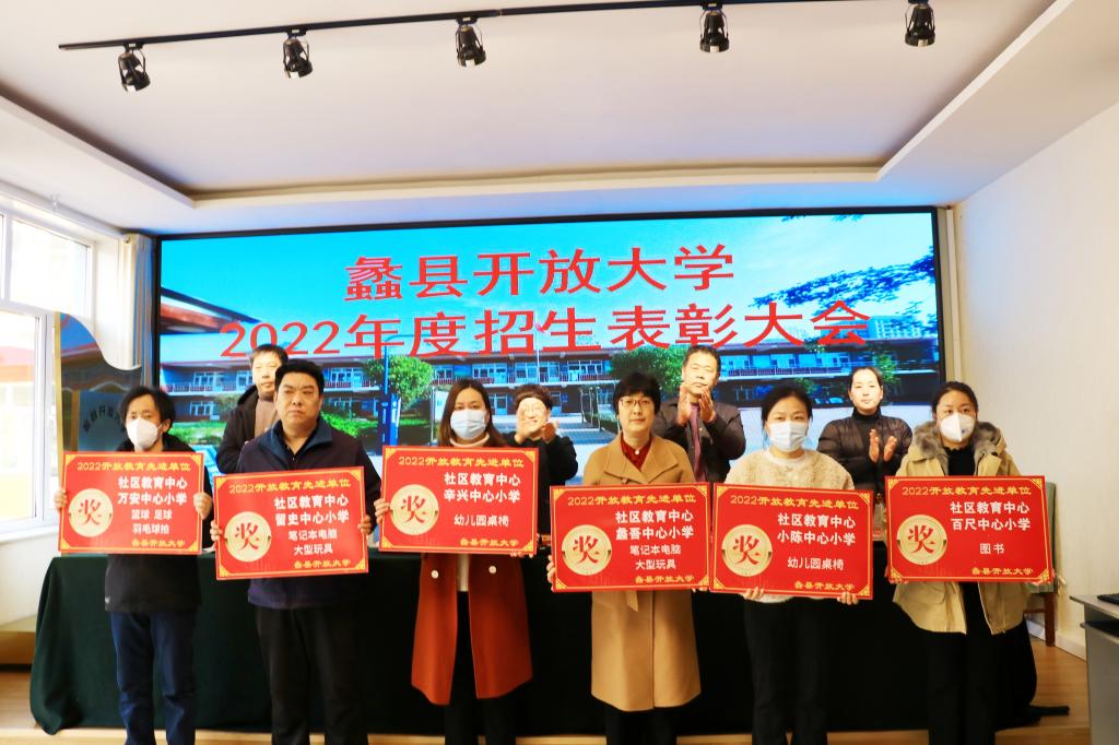 2月15日上午,蠡縣開放大學召開2022年度招生工作表彰大會,全縣各中心小學主管副校長及開放大學全體領導班子成員參加大會。
