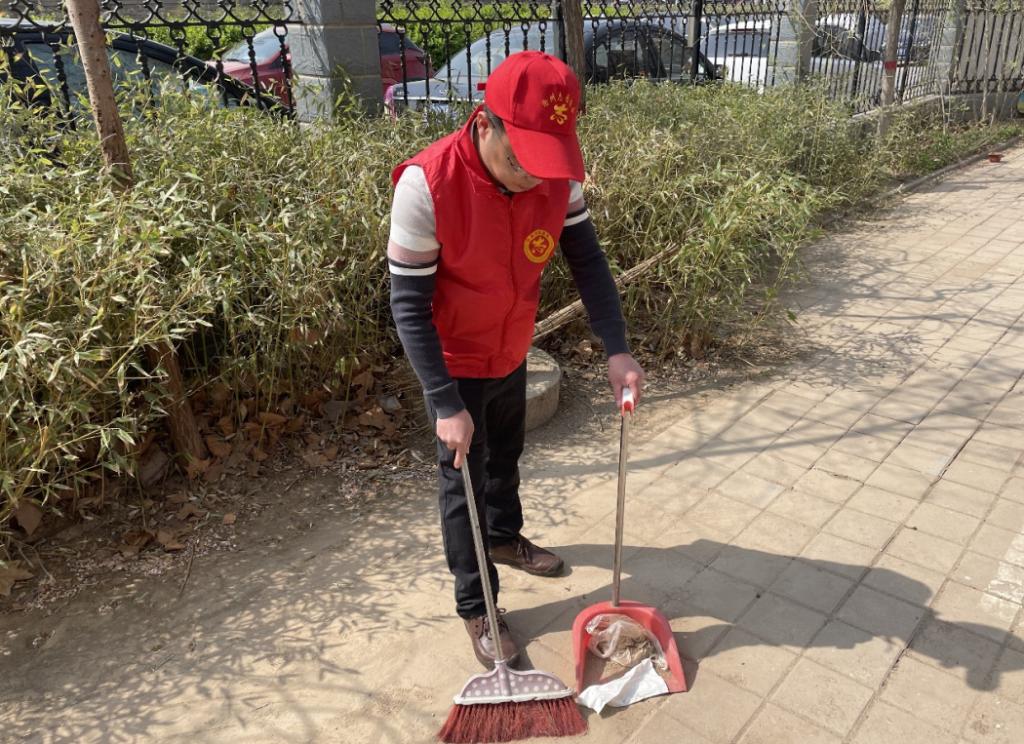 志愿者們清掃小區內的堆積雜物,撿拾煙蒂、垃圾,清理綠化帶枯枝雜草,維護停車秩序,對共享單車和非機動車規范擺放,同時向居民發放文明主題宣傳資料,弘揚社會公德、職業道德、家庭美德。