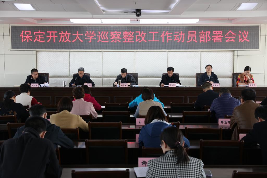 為扎實推進(jìn)巡察整改工作,確保巡察整改任務(wù)取得實效,3月28日上午,保定開放大學(xué)在十樓會議室召開巡察整改工作動員部署會,校黨委班子成員和全體中層干部參加會議。會議由保定開放大學(xué)校長李樹進(jìn)主持。