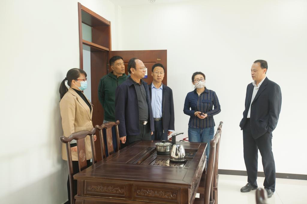 王凱旖一行人首先對我校沙盤、書畫、鋼琴、瑜伽、舞蹈、烘焙、VR等老年教育體驗室進行了實地查驗,詳細了解了我校老年教育基礎設施、硬件建設、課程建設、教學組織、教學管理、師資配備等方面的實際情況。呂中戰在陪同查驗的過程中,對我校老年教育機構建設、辦學概況、政策制度保障、支持服務體系、辦學成果以及我校老年教育未來發展規劃和前景等進行了具體匯報。