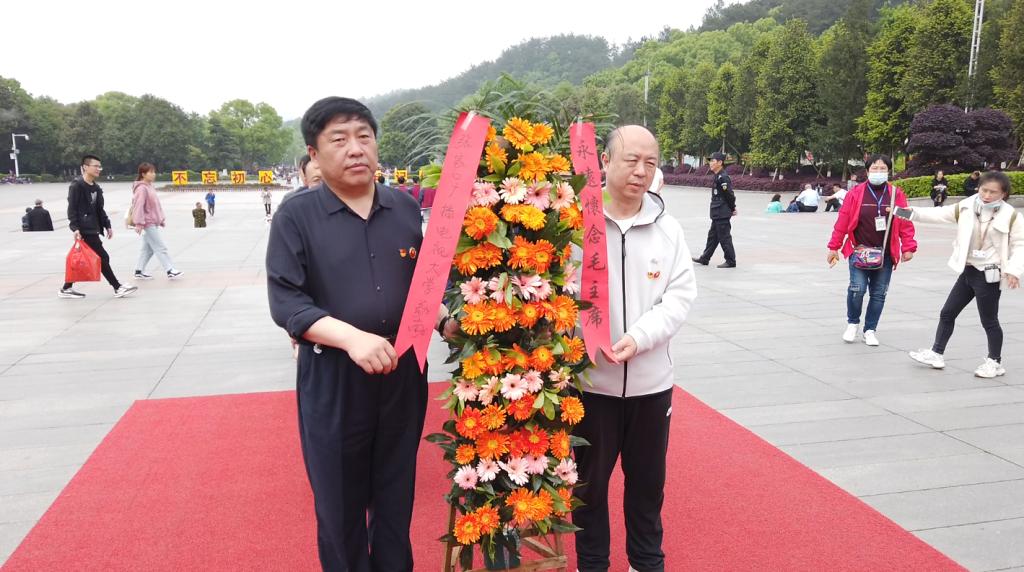 在韶山毛澤東廣場,深情的《獻花曲》響起,校黨委書記許桂友、懷安縣電大校長程樹國護送花籃緩步走到毛澤東同志銅像前,將花籃輕輕放下,仔細整理花籃緞帶。大家緩步來到毛澤東同志銅像前,肅立、鞠躬、繞行、瞻仰,表達對毛主席的崇高敬意和無限追思。