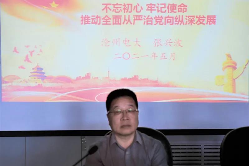 日前,根據(jù)學(xué)校黨委安排,滄州電大黨委委員、紀(jì)委書(shū)記張興波為全體黨員和教職工講授黨史學(xué)習(xí)教育專題黨課。張興波結(jié)合多年紀(jì)檢監(jiān)察工作經(jīng)歷和近期的學(xué)習(xí)思考,以《不忘初心 牢記使命 推動(dòng)全面從嚴(yán)治黨向縱深發(fā)展》為題,為全體教工進(jìn)行了深入講解。